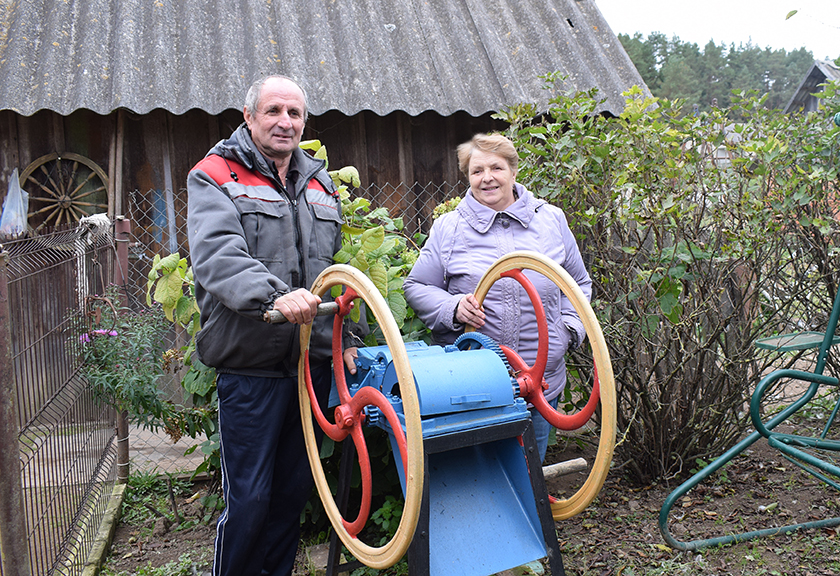 І хоць летнія кветкі ўжо адцвілі, але ж палісаднік упрыгожваюць хрызантэмы, ружы, аксаміткі, падаконнік – петуніі. Родныя ведаюць, што падарыць сям’і Снітко на святы. Так на падворку з’явіліся драўляныя буслы каля агароджы, ружы. У якасці малой архітэктурнай формы гаспадары паставілі на падворку саломарэзку, якой карысталіся яшчэ іх бацькі. Пафарбавалі – і сямейны музейны экспанат гатовы.