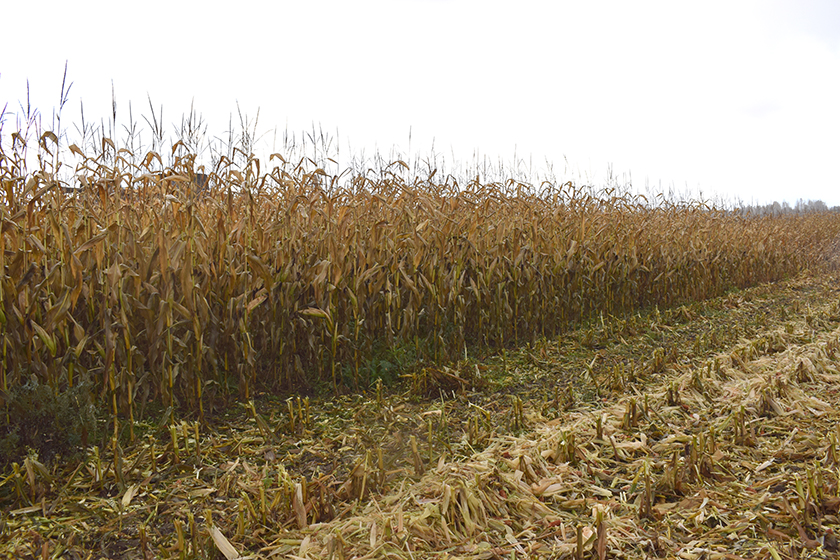 «На Шуміліншчыне ў нас засеяна 811 гектараў кукурузы на зерне, – расказаў начальнік участка раслінаводства Дабея ТАА «Вітконпрадукт» Юрый Пачко. – Сярэдняранні гібрыдны гатунак “ДКС 3050” хутка набірае рост, заўсёды выспявае пры нашых умовах надвор’я, устойлівы да холада, дажджоў, засухі і палягання, утрымлівае вялікую колькасць крухмалу – гэтым і цэніцца. Ураджайнасць добрая – 100 цэнтнераў з гектара будзе. Абмалочанае зерне адвозім на зернесушыльны комплекс ЗАТ “Віцебскаграпрадукт” у Лепель. Там яно здрабняецца і выкарыстоўваецца на корм жывёле. У тым ліку і на ўчастку па вырошчванні свіней у Дабеі».