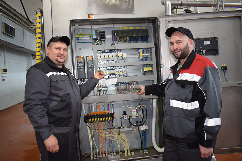 Забяспечыць бесперабойную і безаварыйную работу цэха – справа наладчыкаў абсталявання Аляксандра ГОЛЛЕРА і Мікіты ЦЯРЭНЦЬЕВА. Калі трэба, рамантуюць сепаратар, прэс у сырцэху, пастэрызацыйнаахаладжальныя ўстаноўкі. Цэх працуе роўна і без збояў, бо