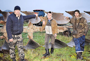 На днях на палетках у Непаротах мы сустрэлі механізатара ААТ «Прыазёрны мір» Віталя Антонава, які працаваў на энерганасычаным трактары з васьмікорпуснымі плугамі. «Працаваў нават па невялікім снезе, — расказаў Віталь. — Дзе вышэйшыя ўчасткі, тэхніка ідзе добра, у нізінах — з натугай. Тым не менш на буксір не прасіўся, спраўляюся сам».