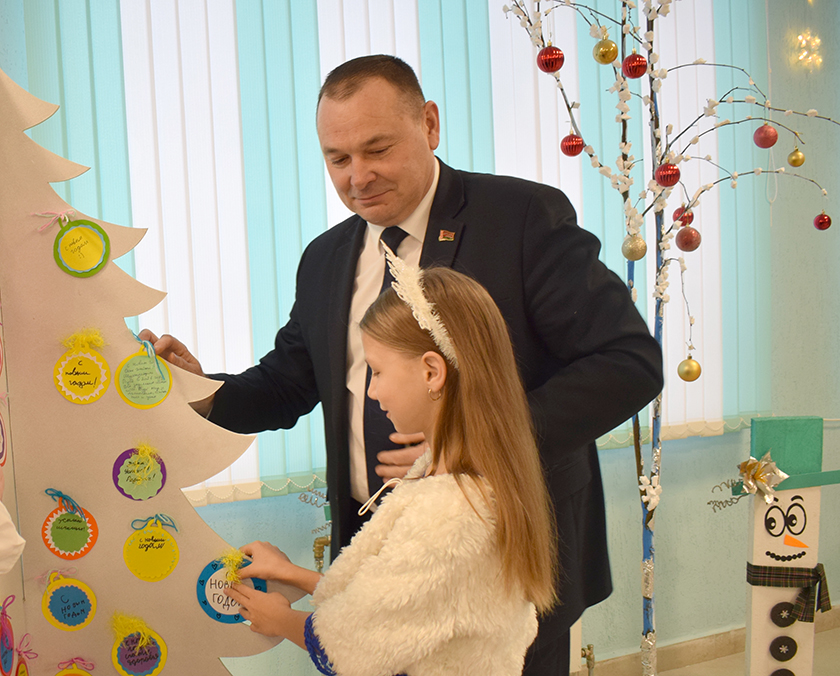 Павіншаваць дзяцей з надыходзячым Новым годам прыйшоў старшыня райвыканкама Мікалай Будневіч. «Сёння мы сабраліся, каб павіншаваць хлопчыкаў і дзяўчынак, якія вызначыліся ў вучобе і творчасці, – адзначыў Мікалай Аляксеевіч. – Дарагія дзеці, лавіце цудоўныя моманты жыцця і помніце пра свае правы і абавязкі, вучыцеся патрэбнаму і важнаму. Няхай усе задуманыя мары збудуцца! А так і будзе, бо галоўнае – вельмі старацца».