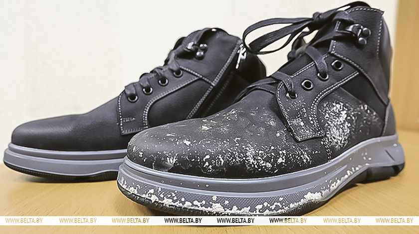 На просушку ушло более двух суток. Результат достаточно плачевный. Сапоги сына покрыты большими кляксами белых пятен. Папины ботинки — еще и какими-то грязными разводами, при виде которых лишний раз убеждаемся, что обувь все-таки лучше чистить. Мамины сапожки сохранили почти первозданный вид. Прихватив обувь, отправляемся в одно из подразделений сети мастерских «Ялина» в Минске.