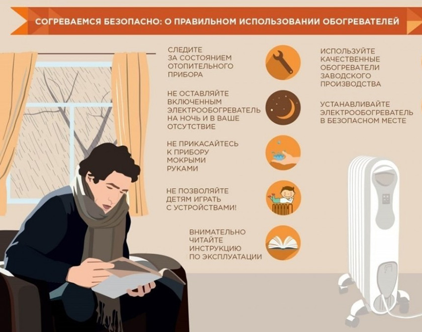 В зимний период наряду с печным и централизованным отоплением широко используются электронагревательные устройства. Это достаточно простые и удобные в обращении электрические приборы. Кажется, что они гораздо безопаснее, к примеру, печей, но при несоблюдении определенных условий эксплуатации тоже могут доставить немало проблем. Несоблюдение правил их эксплуатации часто приводит к трагическим последствиям.