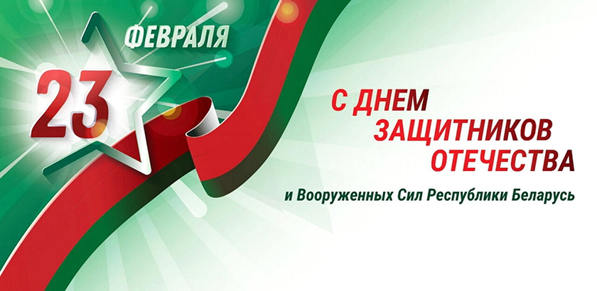 Уважаемые мужчины, ветераны Великой Отечественной войны и Вооружённых Сил, военнослужащие! Сердечно поздравляем вас с Днём защитников Отечества и Вооружённых Сил Республики Беларусь!
