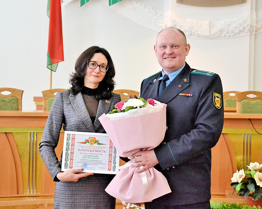 Инну Грабовскую, которая четыре с половиной года работала в суде района, поблагодарили за работу. Прокурор Шумилинского района Антон Горохов, вручая Инне Валерьевне благодарность и цветы, поблагодарил за тесную и плодотворную работу и пожелал дальнейших успехов. Инна Грабовская продолжит службу судьёй в Витебском областном суде.