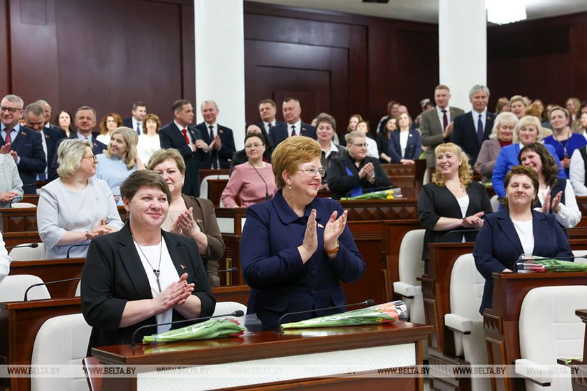 «И сегодня вам подвластны все профессиональные вершины. Белоруски составляют более половины занятого населения. Наши соотечественницы уверенно демонстрируют и лидерский потенциал. Только в Палате представителей доля женщин превышает 35%, что выше среднемирового показателя», — отметил председатель Палаты представителей.