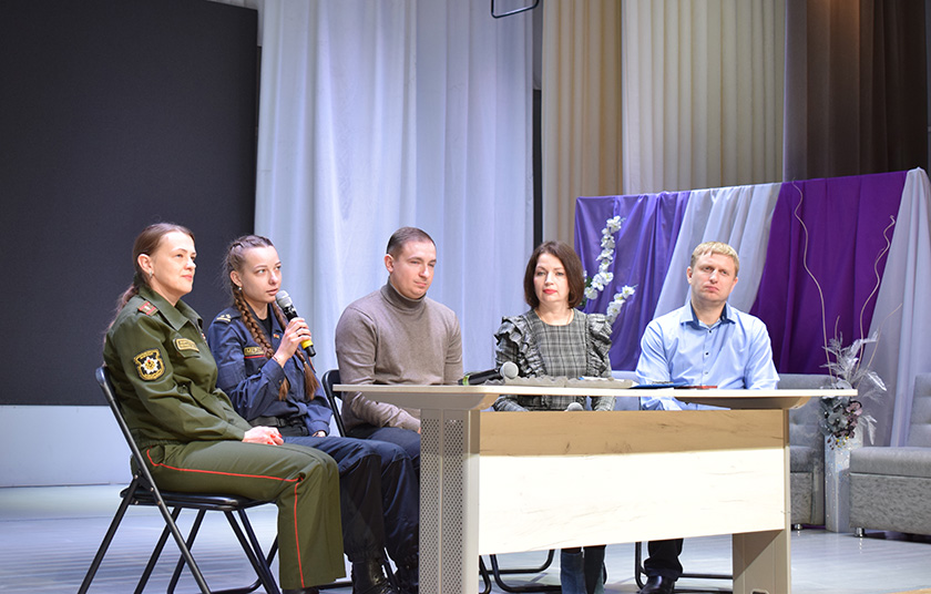 Пасля прагляду фільма прайшло яго абмеркаванне. Мадэратарам выступіла начальнік аддзела па адукацыі Аксана Талстая. Яна адзначыла: каб стаць абаронцам, неабавязкова быць на ваеннай службе. Абаронца – той, хто дапамог слабейшаму, стаў валанцёрам, праявіў сябе ў спорце, конкурсах. Пра мужнасць і адвагу салдат гаварыла начальнік адасобленай групы Шумілінскага раёна ваеннага камісарыята Бешанковіцкага і Шумілінскага раёнаў Наталля Банцэр. Старшы інспектар інспекцыі па справах непаўналетніх Дар’я Трафімава, намеснік начальніка РАУС Павел Трафімаў, кіраўнік ваенна-патрыятычнага клуба «Юны гвардзеец» СШ № 1 г. п. Шуміліна Яўген Сахончык падкрэслілі, што служыць сваёй радзіме, рабіць добрыя справы для людзей можа кожны школьнік – гэта і будзе маленькі ўклад у дабрабыт краіны.