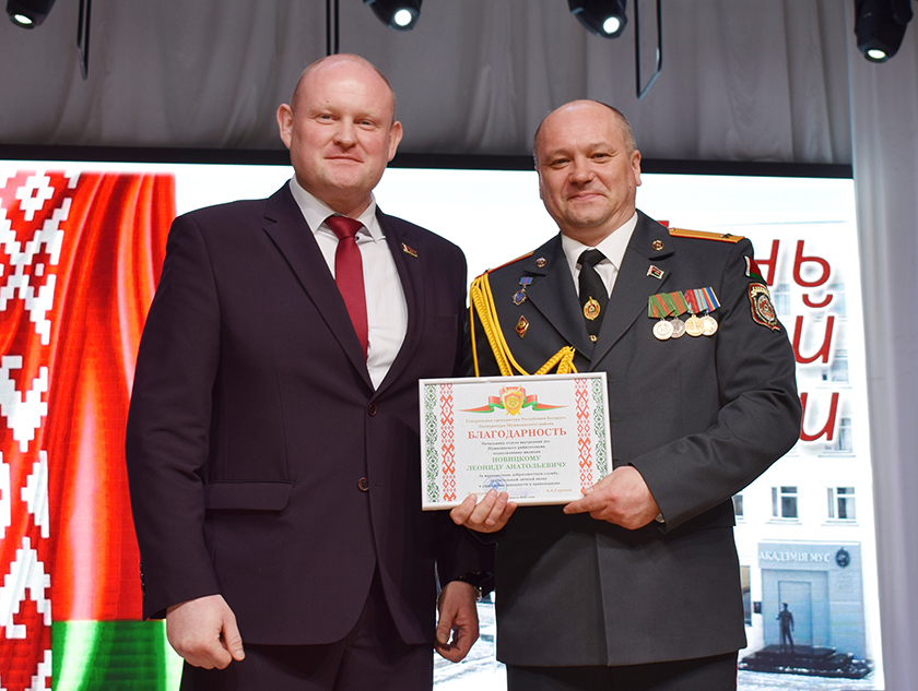 Словы шчырай удзячнасці за цеснае супрацоўніцтва адрасаваў работнікам міліцыі пракурор раёна Антон Гарохаў. Ён уручыў падзяку Леаніду Навіцкаму за добрасумленную службу.