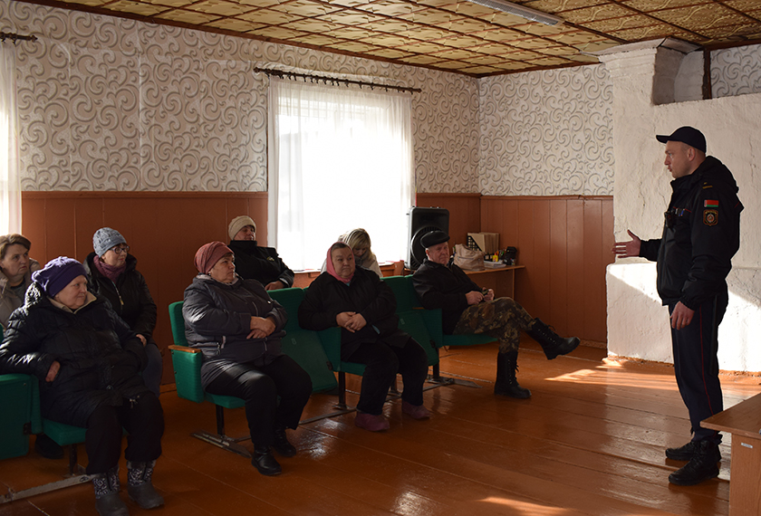 Ва ўсіх населеных пунктах в. а. начальніка РАНС Дзмітрый Гушчын патлумачыў людзям, чаму нельга выпальваць сухую траву і да чаго гэта можа прывесці. А старшы ўчастковы інспектар РАУС Віктар Галуза расказаў, як не стаць ахвярамі махляроў і кіберзлачынцаў, і нагадаў, што фінансавыя пытанні вырашаюць работнікі банкаў, а не прадстаўнікі сілавых структур.